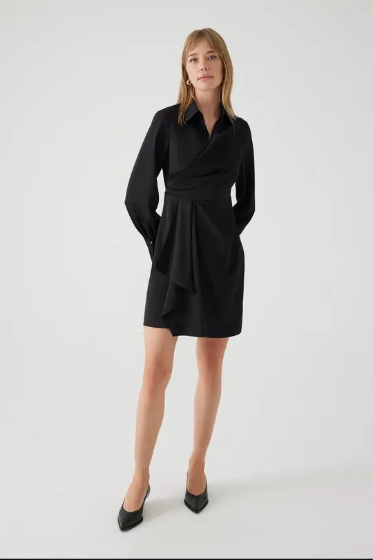 Upgrade your wardrobe with our ARIADNE DRESS! This regular-fit, black dress features a mini wrap design that exudes sophistication and femininity. Made from 100% polyester, it's perfect for both special occasions and everyday wear. Don't miss out on this must-have from our well handpicked style to your forever closet.