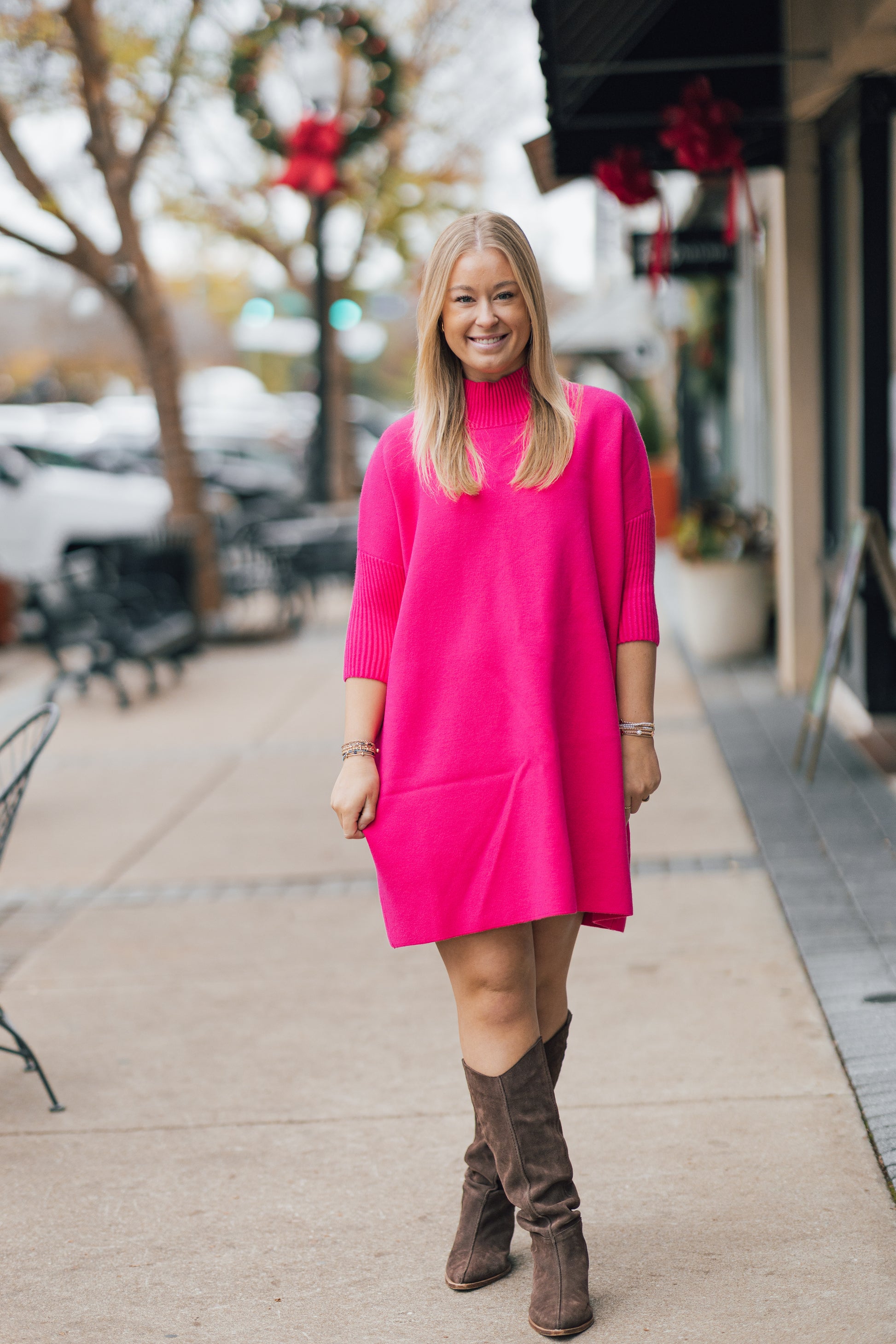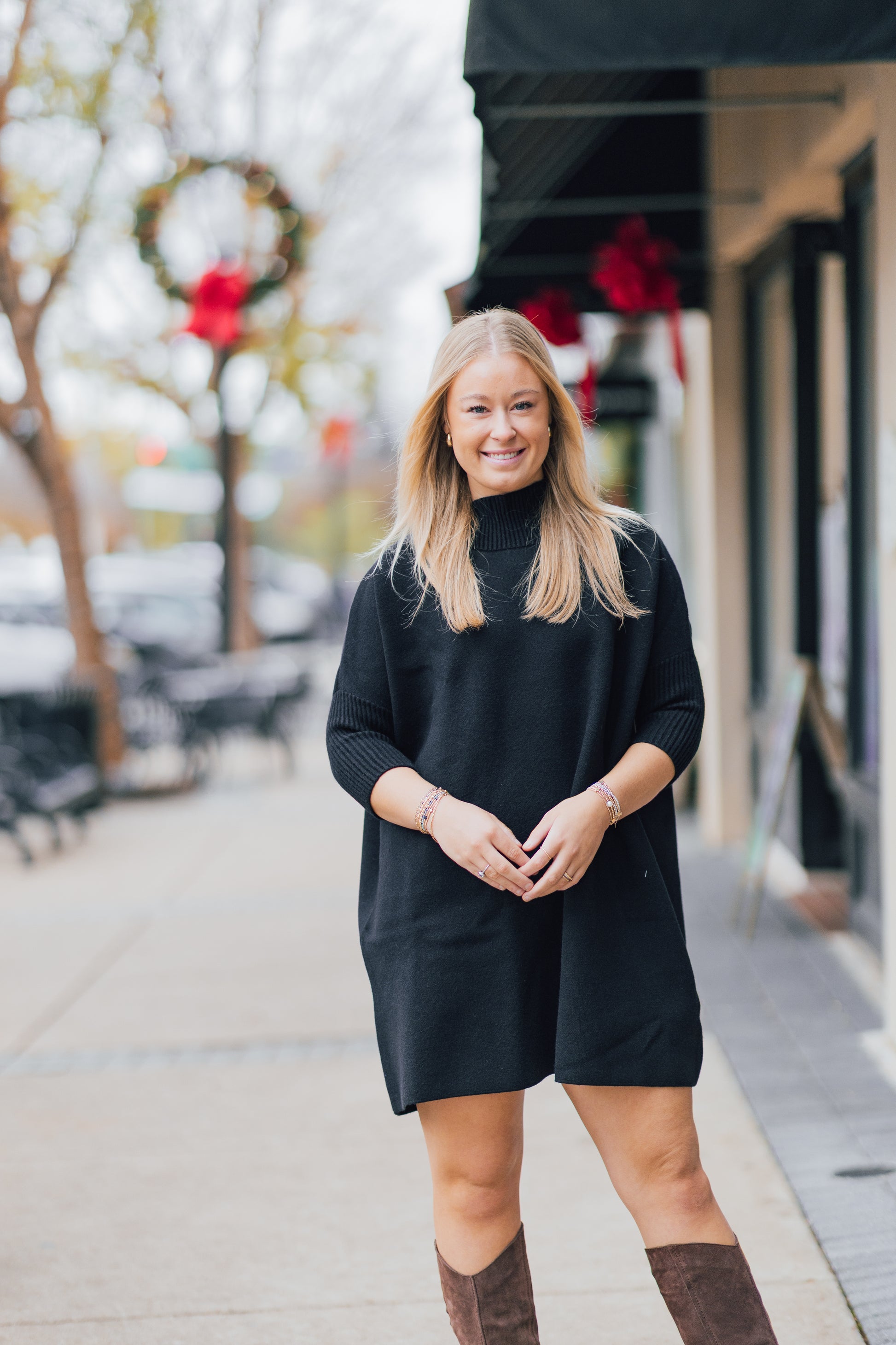 Elevate your style with the AJA DRESS BY KERISMA. This mod-inspired dress features a structured, oversized silhouette and a sculptural rib turtleneck for a daring yet sophisticated look. Designed with fitted 3/4 sleeves and a blend of angora, viscose, nylon, and polyester, this dress is perfect for any occasion, from a chic cocktail soirée to a cozy Sunday museum date. Complete the look with the Aja 'Linka' Dress for a lightweight, textured version.