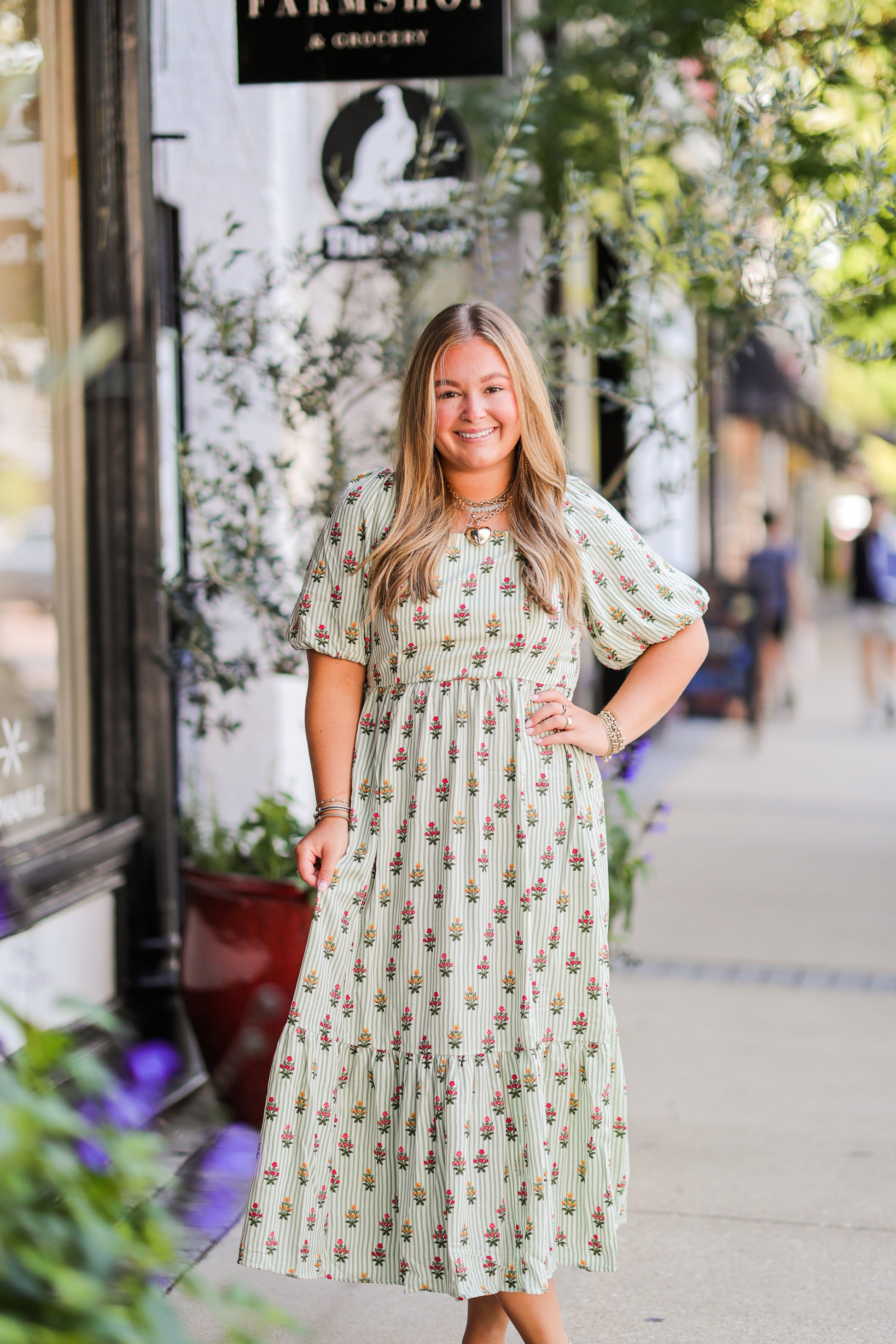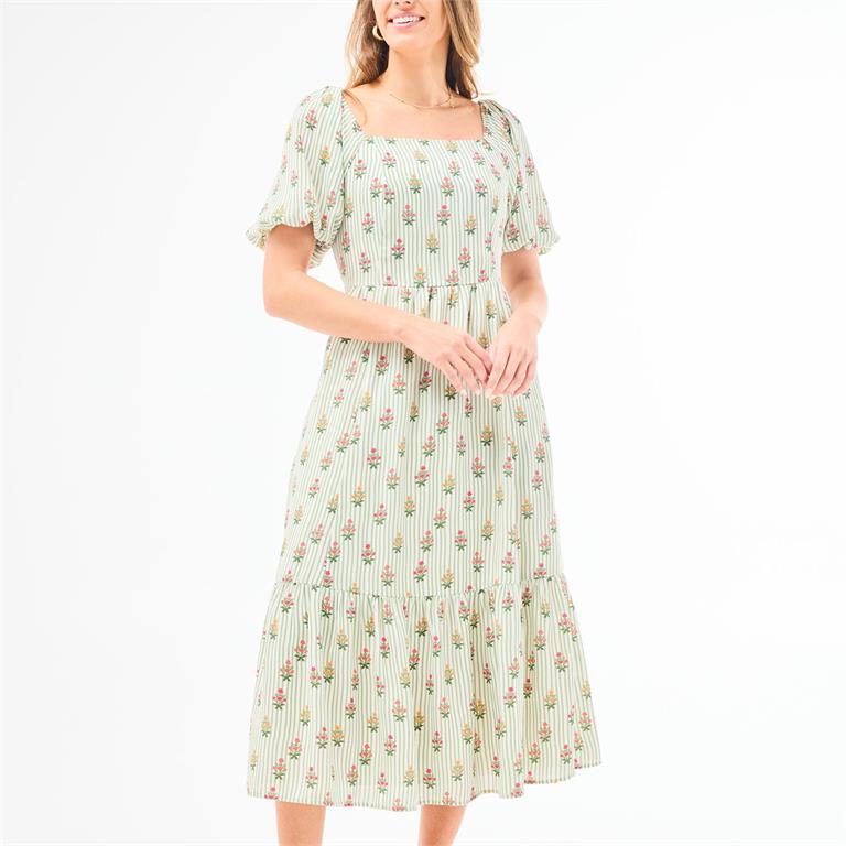 Step into charm with the Alexi Cottage Stripes Dress, featuring a silky fabric adorned with delicate printed flowers and a flattering square neckline. This dress effortlessly blends comfort and style, making it your go-to for sunny days and casual outings. Simply beautiful and ready to brighten your wardrobe!