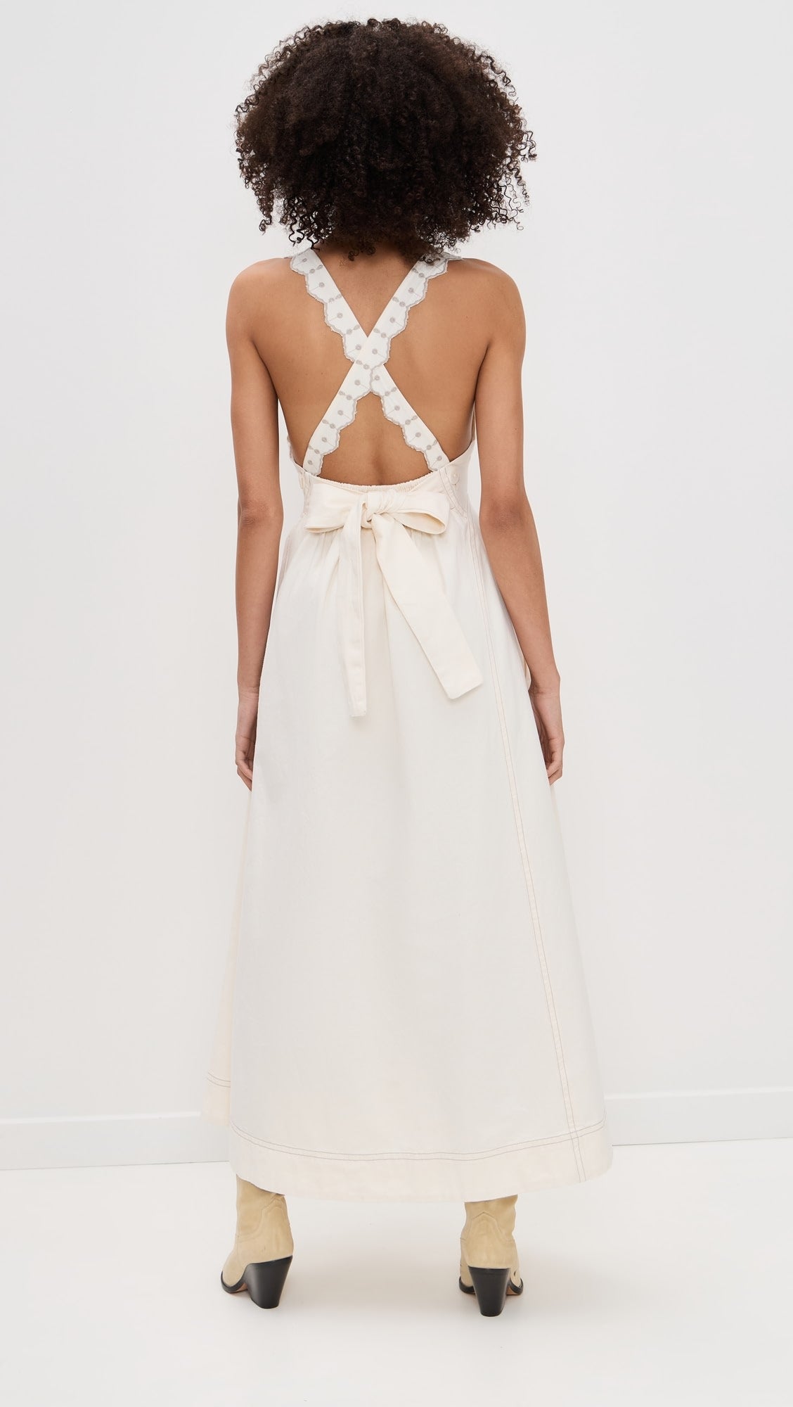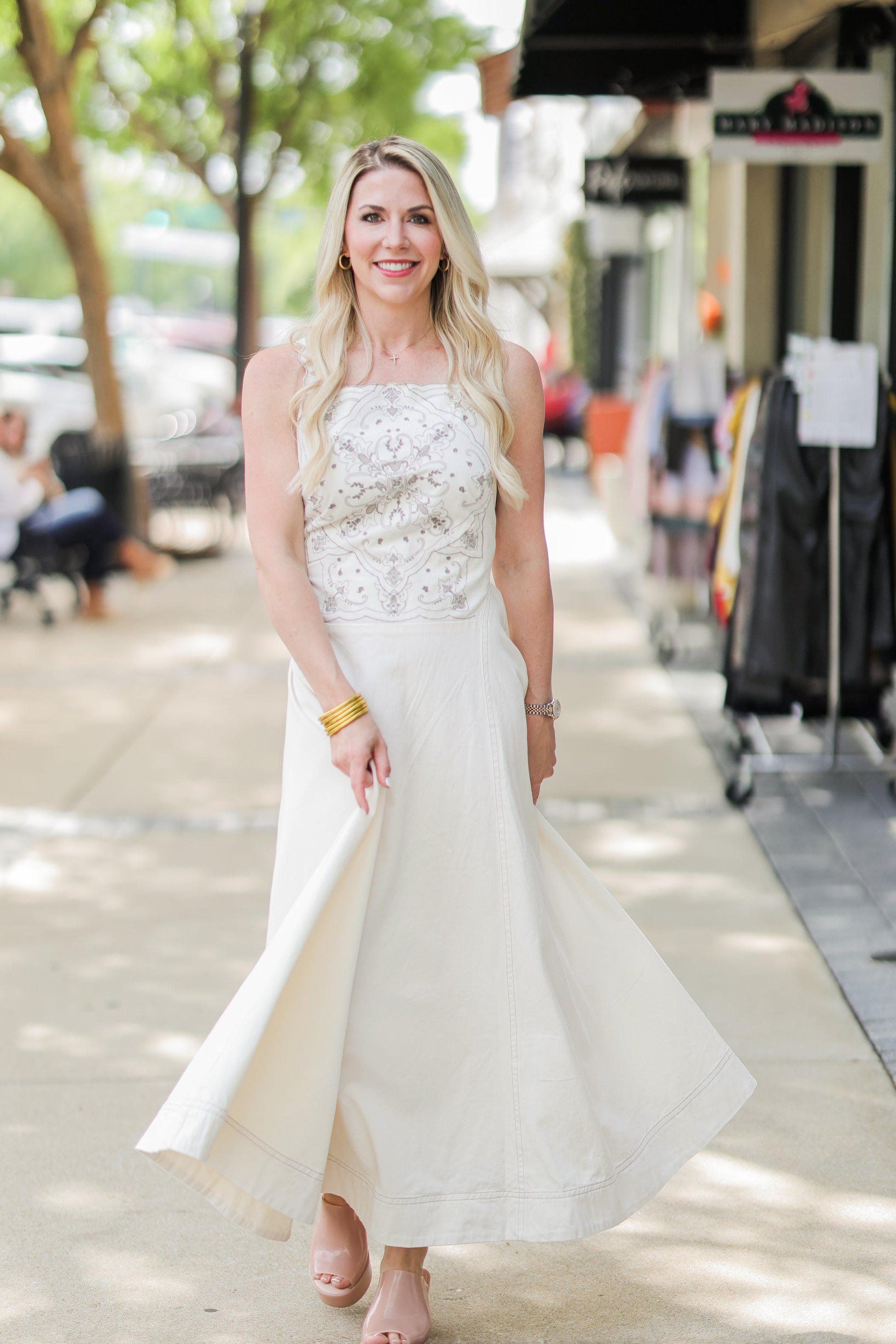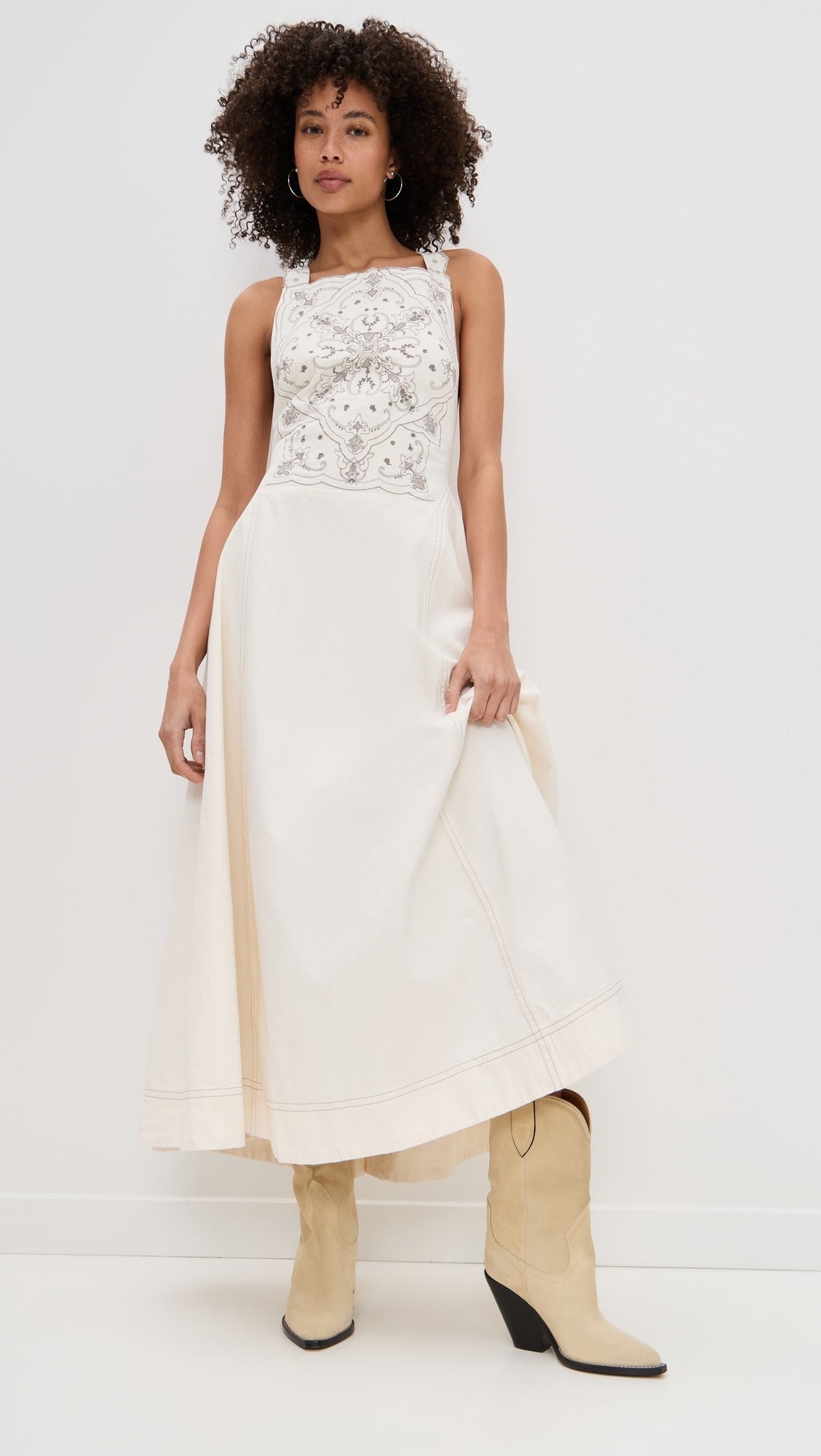 Introducing the BALI VIENNA MAXI dress, a statement piece that combines a denim feel with an off-white linen design. Made in India, this dress exudes Free People style and is sure to turn heads wherever you go. Elevate your wardrobe with this unique and eye-catching piece. The back is just as fab as the front.