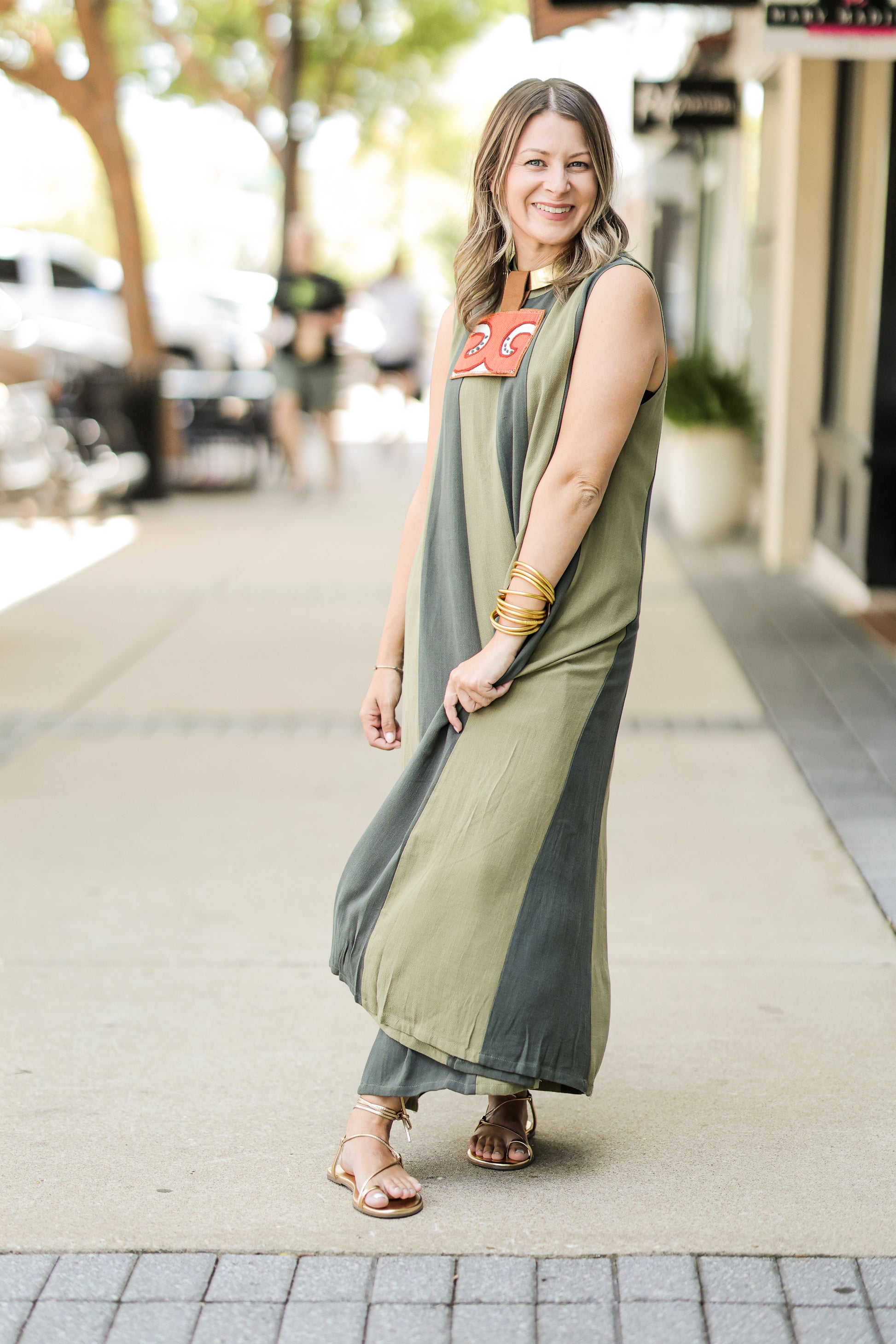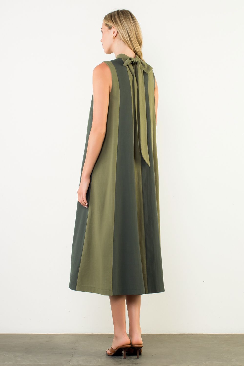 Step into fall with the Basil Stripe Dress, featuring a charming high neck and an elegant tie-back detail. Its beautiful green hue makes it the perfect pick for weddings or casual outings, adding a fresh, playful touch to your wardrobe. Flowy and flattering, this dress lets you twirl through the season with ease and style.