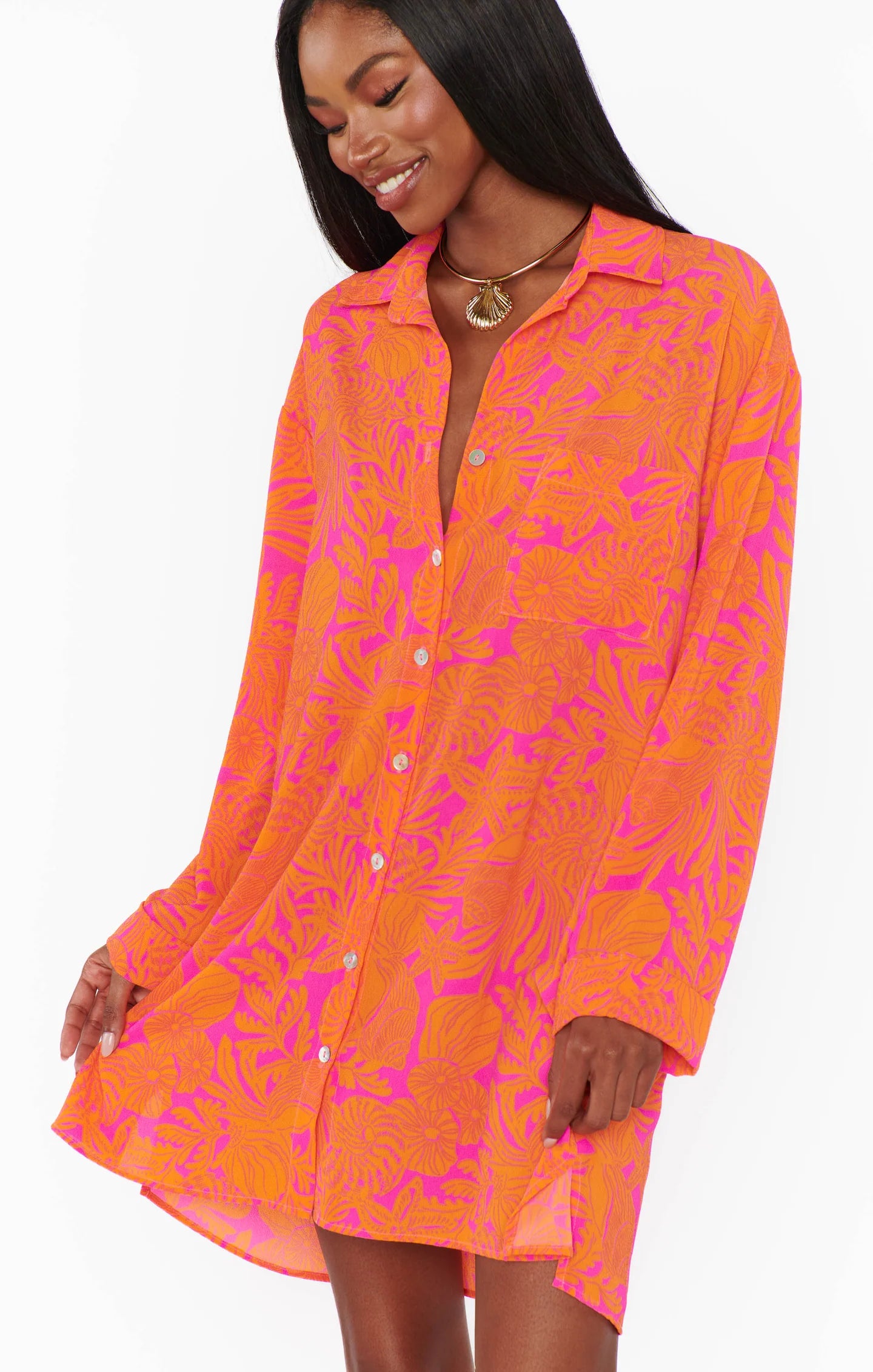 Get ready for a sunny escape with the Beach Club Button Down. Its loose, breezy fit, front buttons, and longer length make it the perfect cover-up for your favorite Mumu swimwear. Simply slip on your flip-flops and grab your tote for a day at the beach club!