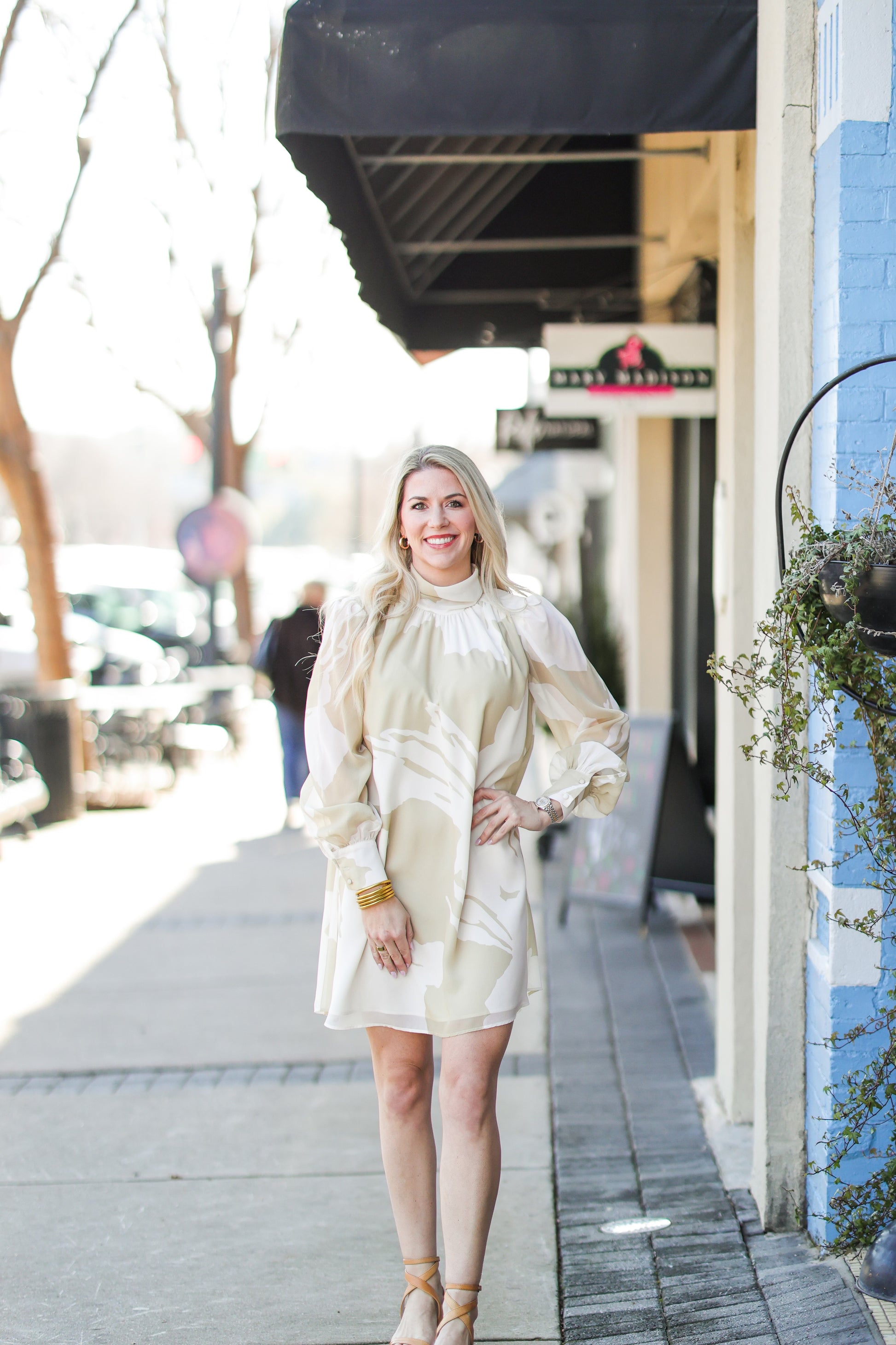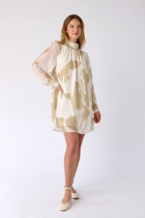 Introducing our exquisite CARTER DRESS, featuring a subtle tan and white palette that evokes the soft beauty of a summer's day. With a high neck and stunning design, this dress is perfect for any occasion, from Easter to bridal events. Elevate your wardrobe with this luxurious and timeless piece.