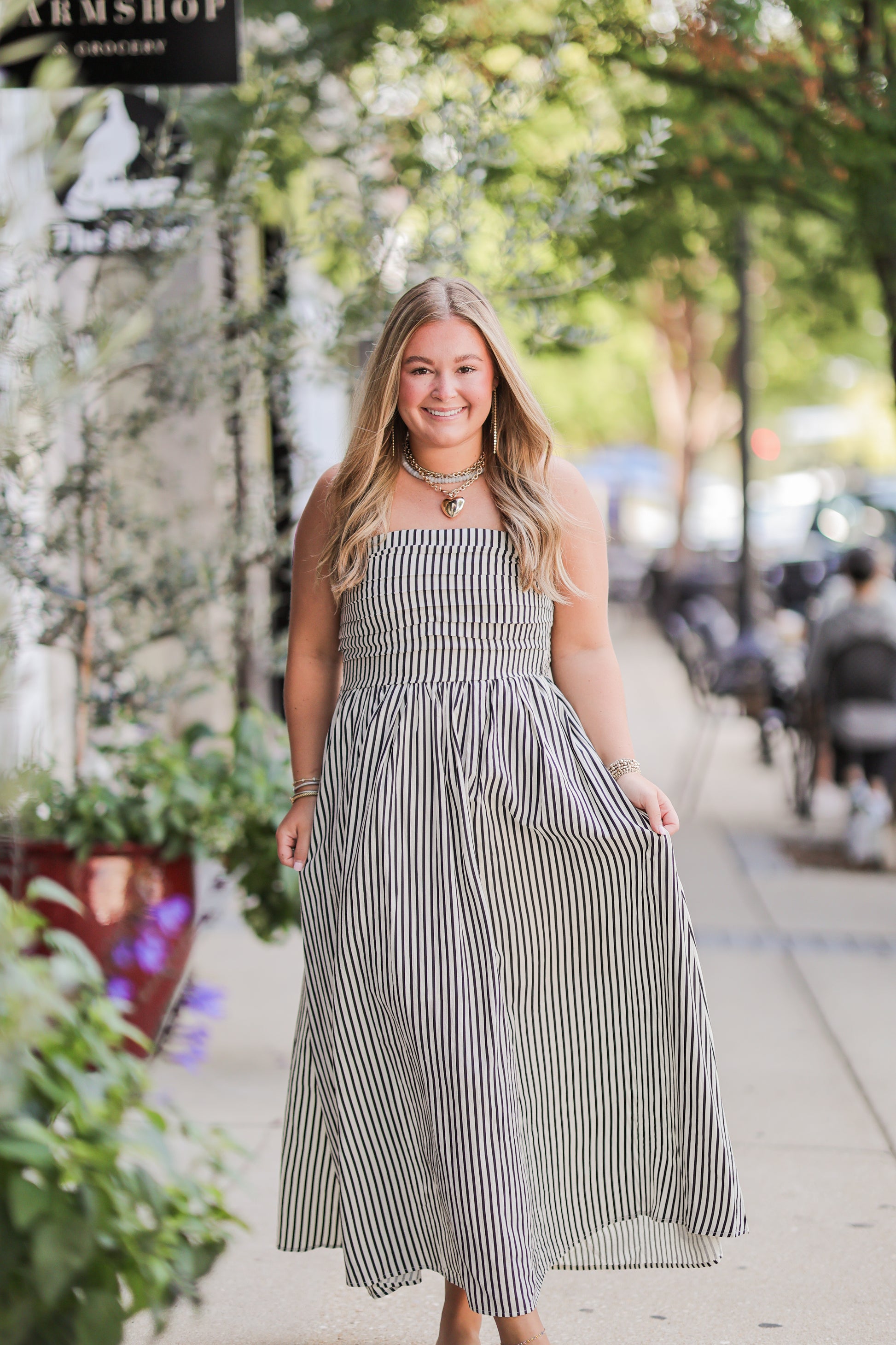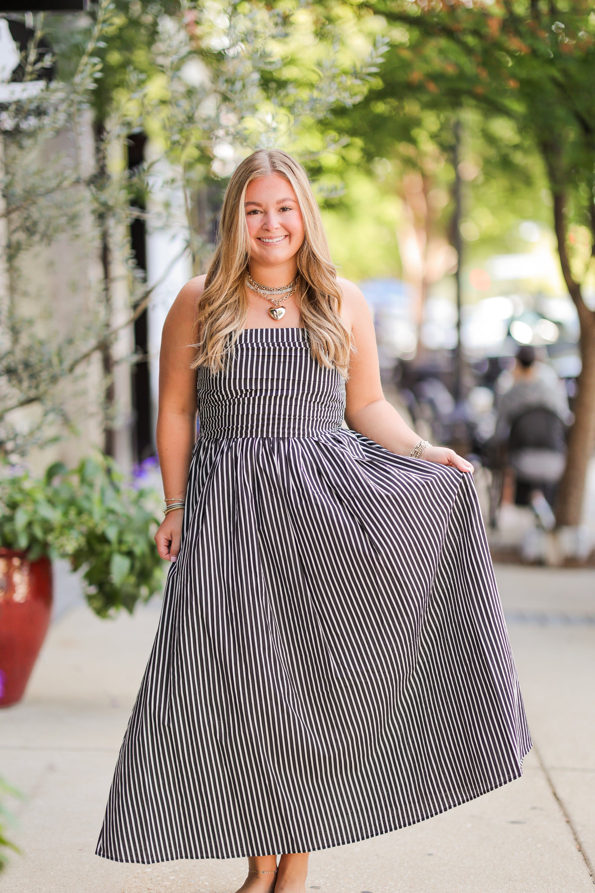Step out in style with the Cauley Striped Tube Maxi Dress! Its playful stripes and smocked bodice highlight your waist while the flowing midi skirt adds a breezy, graceful vibe. Made from a soft, lightweight blend of rayon, polyester, and nylon, this dress keeps you comfy whether you're out for a casual stroll or dancing the night away. Perfect for any occasion that calls for effortless charm and fun flair.
