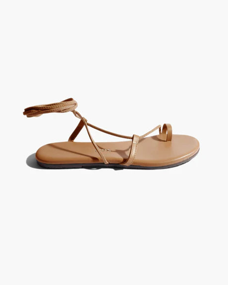 Barely-there, wrap-up sandals with a delicate toe loop and two perfectly placed straps for support. Handcrafted from soft Brazilian napa leather with adjustable suede ankle ties, a cushioned insole, and a rubber outsole for comfort.