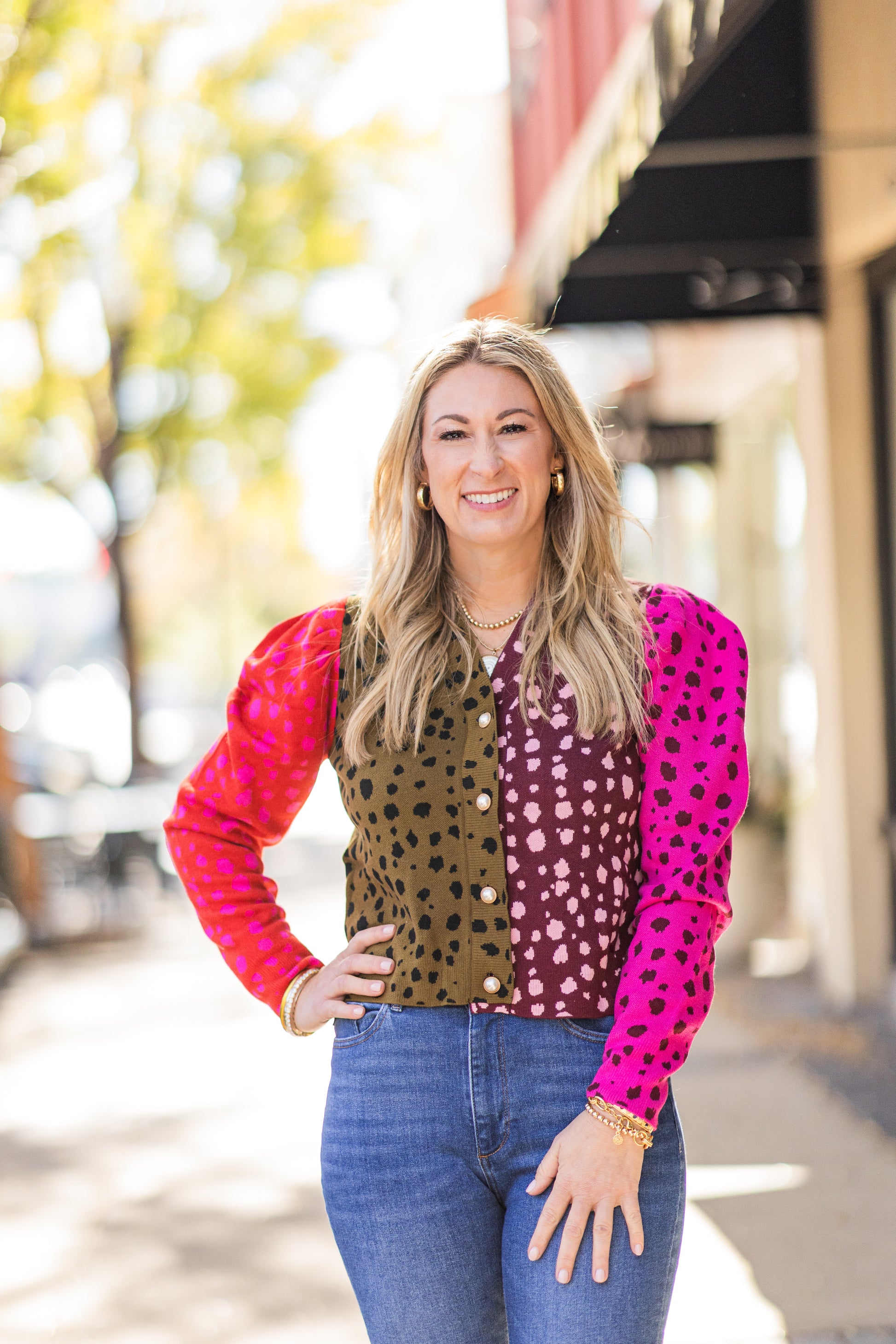 The Jovie Cardigan Spotted brings effortless style to your everyday wardrobe. This charming button-front piece features a playful spotted colorblock design that adds visual interest to any outfit. The relaxed fit and soft construction make it perfect for layering over your favorite tees or dresses, whether you're heading to the office or enjoying a casual weekend. By Crosby's thoughtful design ensures you'll reach for this versatile cardigan again and again, making it a wardrobe essential that works as hard as you do.