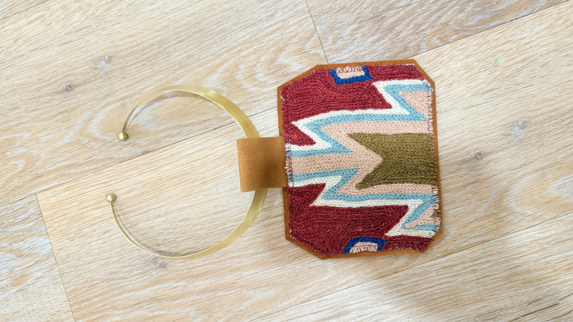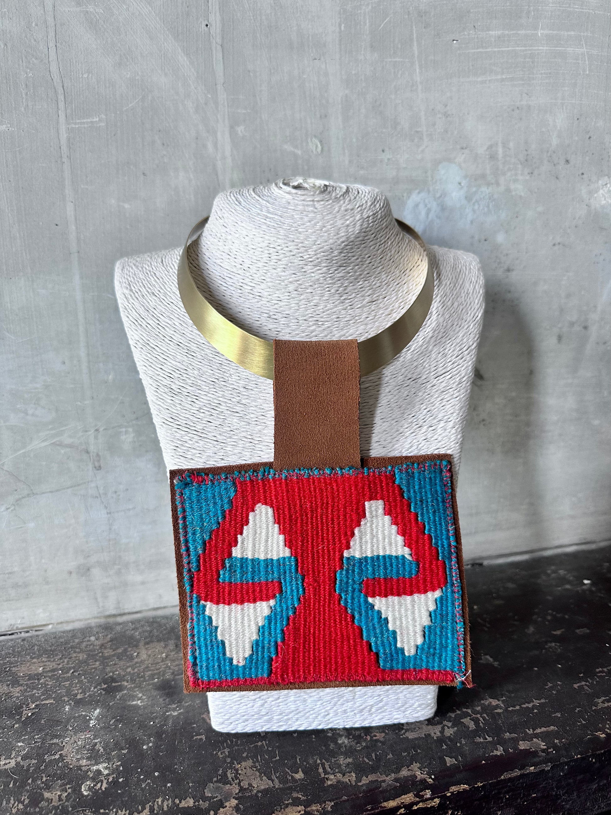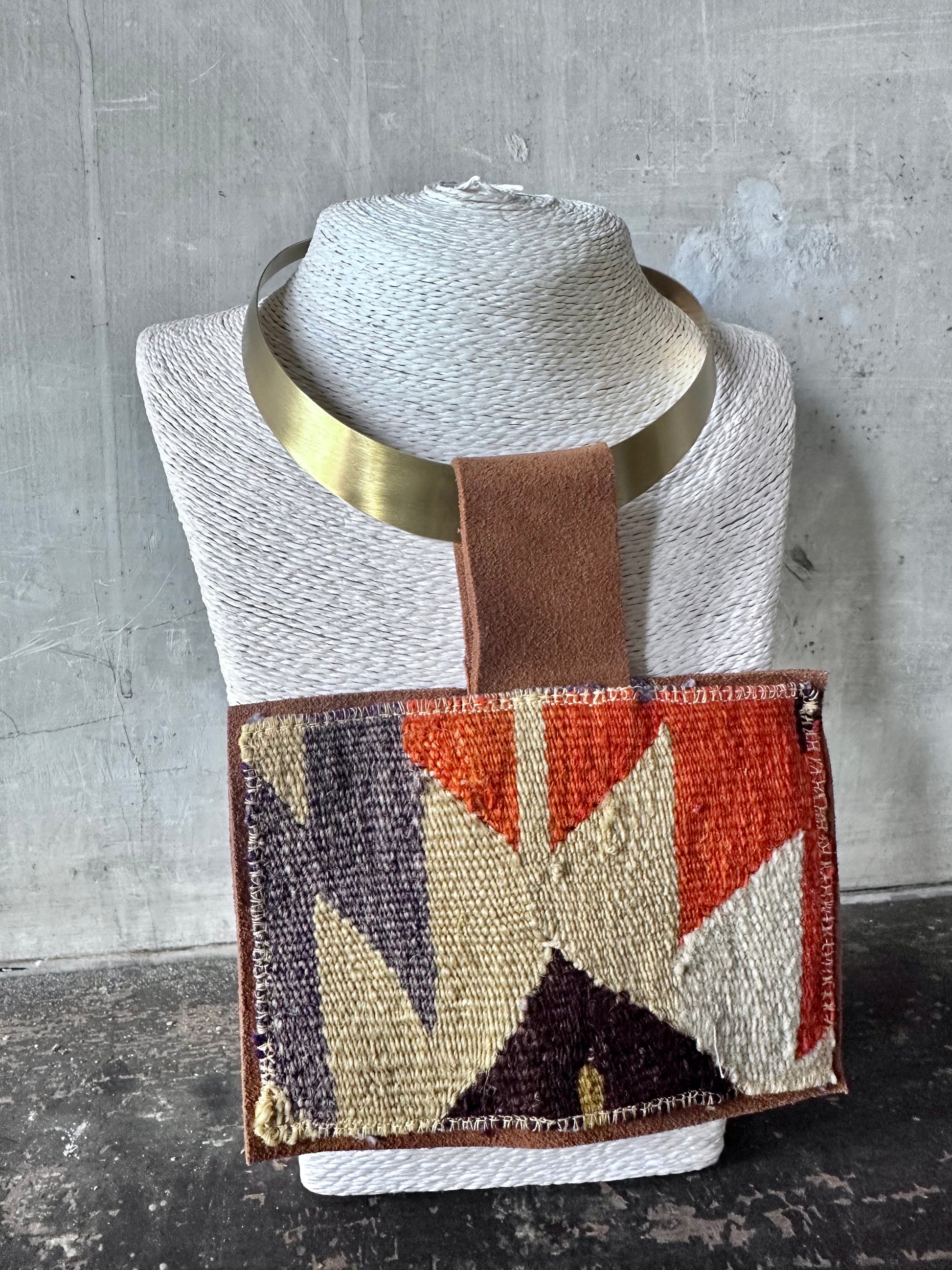 Discover the unique charm of our KILM NECKLACE, crafted from authentic vintage Turkish kilim textiles and backed with soft suede for comfort. Each pendant is a bold statement piece, stitched carefully to preserve the fabric’s character while minimizing fraying. Choose your perfect neckpiece style—slim gold, chunky brass, acrylic, or rope—to match your look. Embrace the natural color variations and slight imperfections that make every necklace truly one-of-a-kind. Please note, due to the artisanal process, all sales are final. Elevate your style with a piece that tells a story.