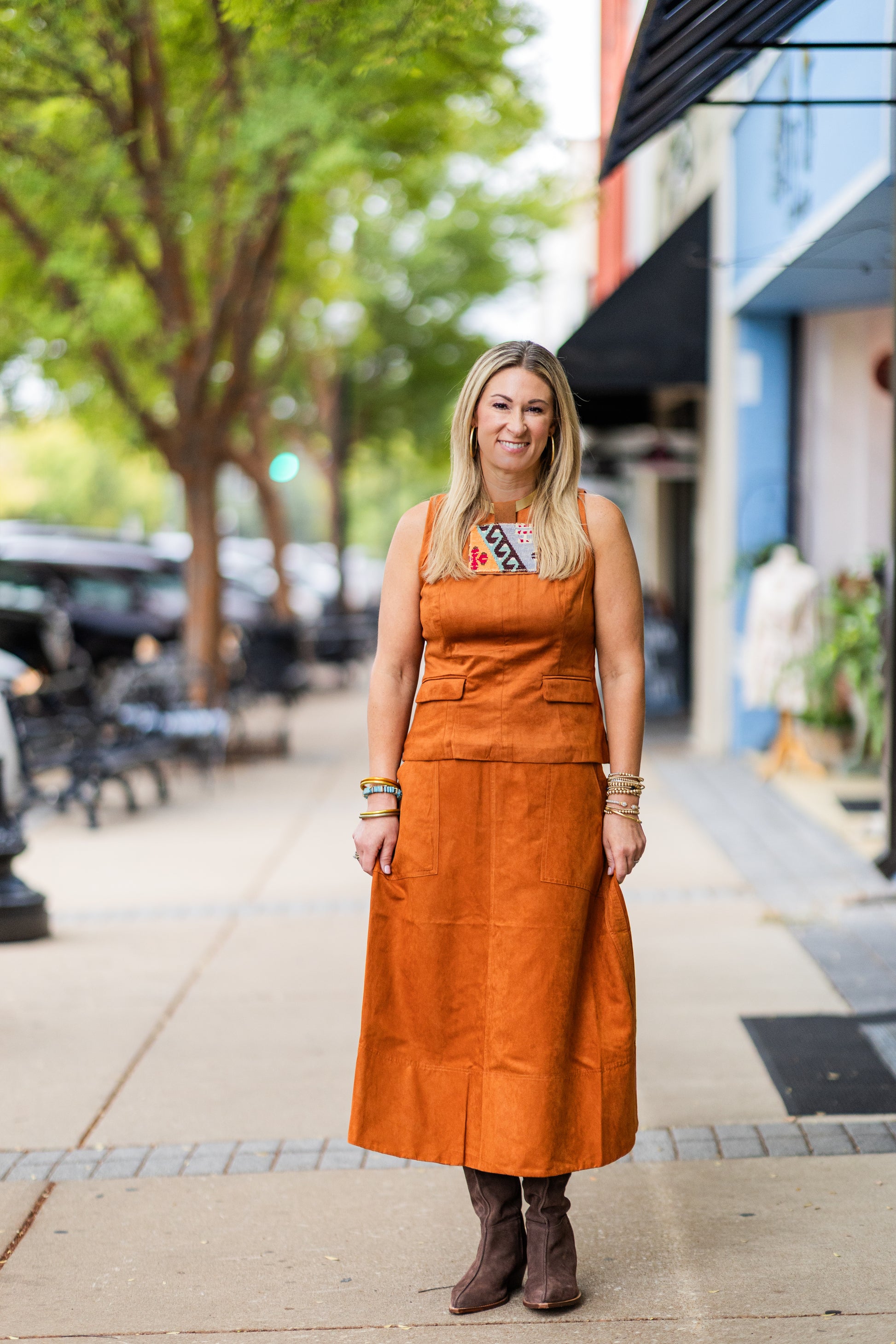 Step into fall with the Lettie Faux Vest, crafted from soft faux suede in a warm Tree Bark hue. This playful piece adds cozy texture and autumnal charm to any outfit, perfect for layering over your favorite tees and sweaters. Embrace the season’s spirit with a vest that’s as fun as it is stylish!