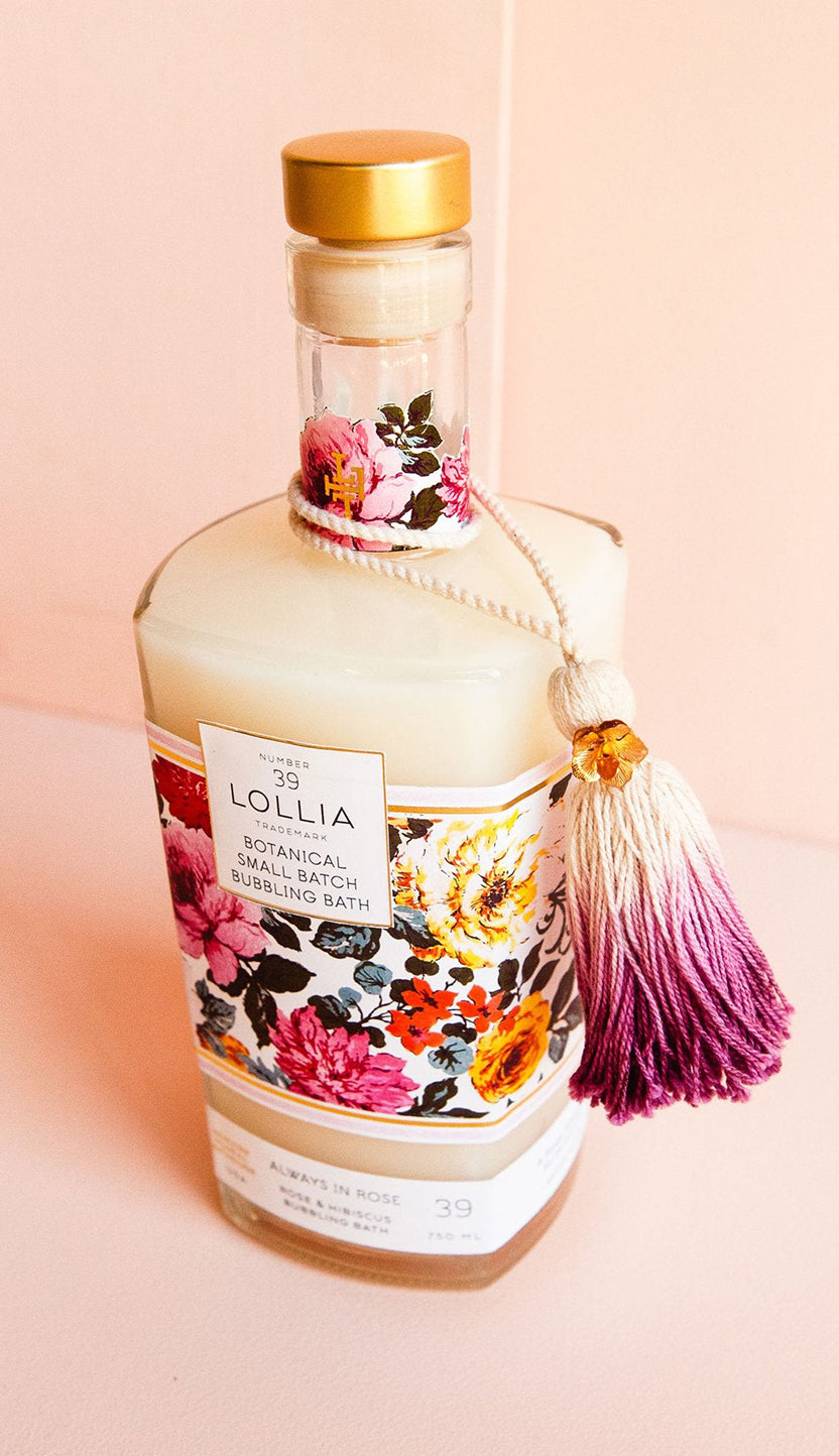 Relax in a tub of lush, fragrant bubbles with Lollia’s Always In Rose Bubble Bath. A moisture-rich blend of Avocado and Olive Fruit Oils, this luxurious formulation sublimely softens as it soothes the senses. Infused with notes of blushing Rose, Hibiscus & warm Amber, this enchanting floral retreat leaves skin subtly scented and petal soft.
