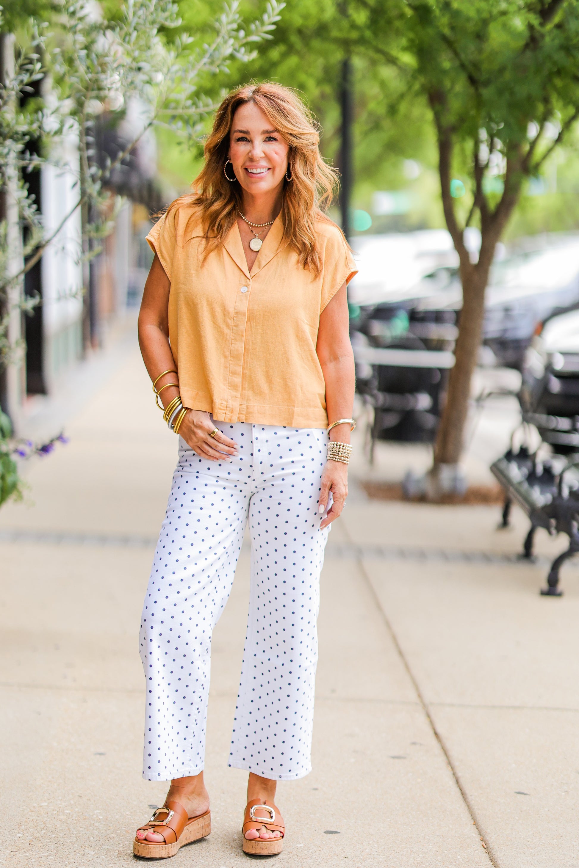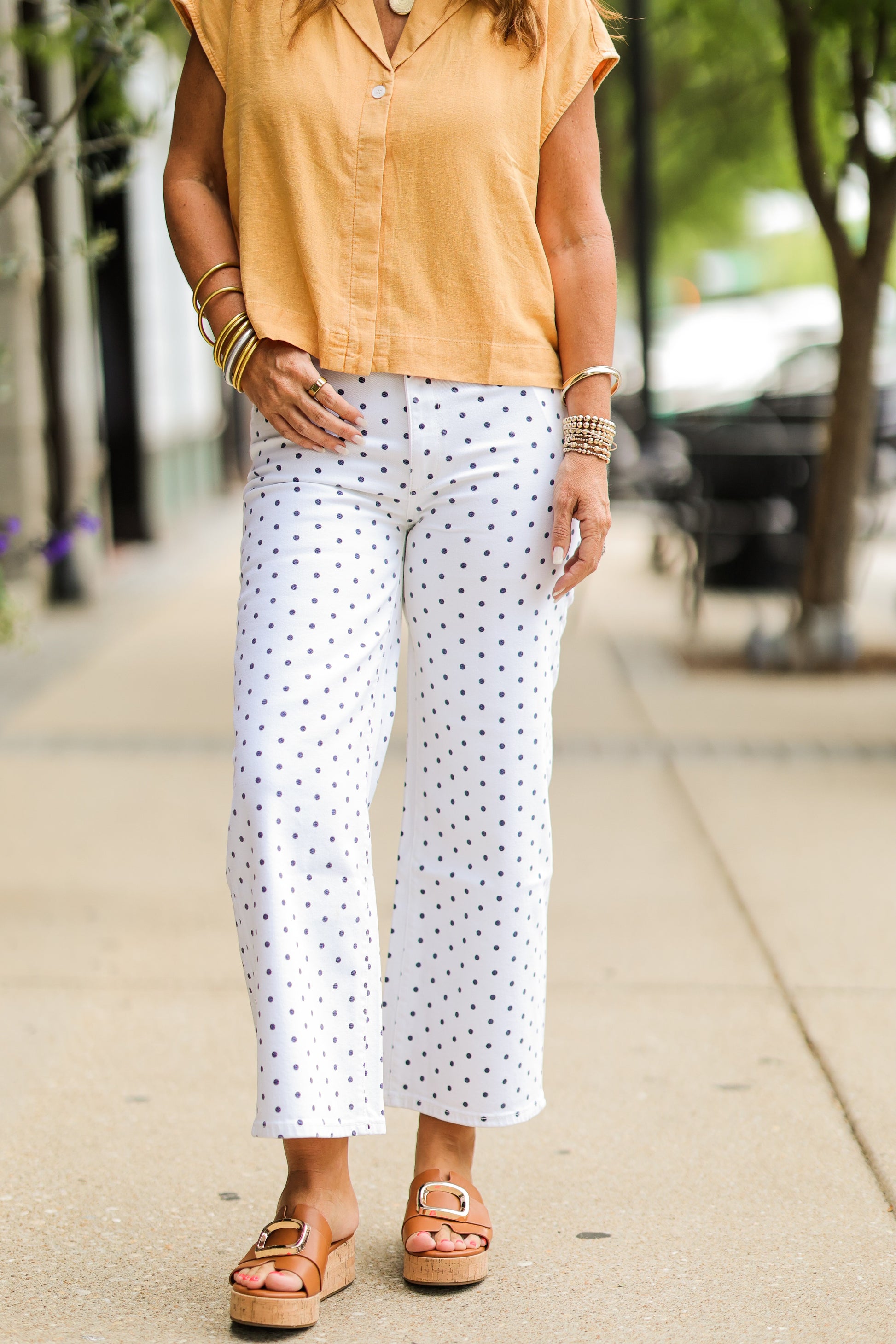 Dive into dot-adorned denim delight with our MARINE DOT HEPBURN jeans! These high-rise, wide-leg beauties feature a playful dot print that's sure to turn heads. With a structured rigid fit that gets better with every wear, they're the perfect blend of vintage charm and modern style. The 27" ankle inseam creates that perfect cropped silhouette, while classic details like tonal stitching and brown buttons add authentic character. Your new favorite statement piece just sailed into port!