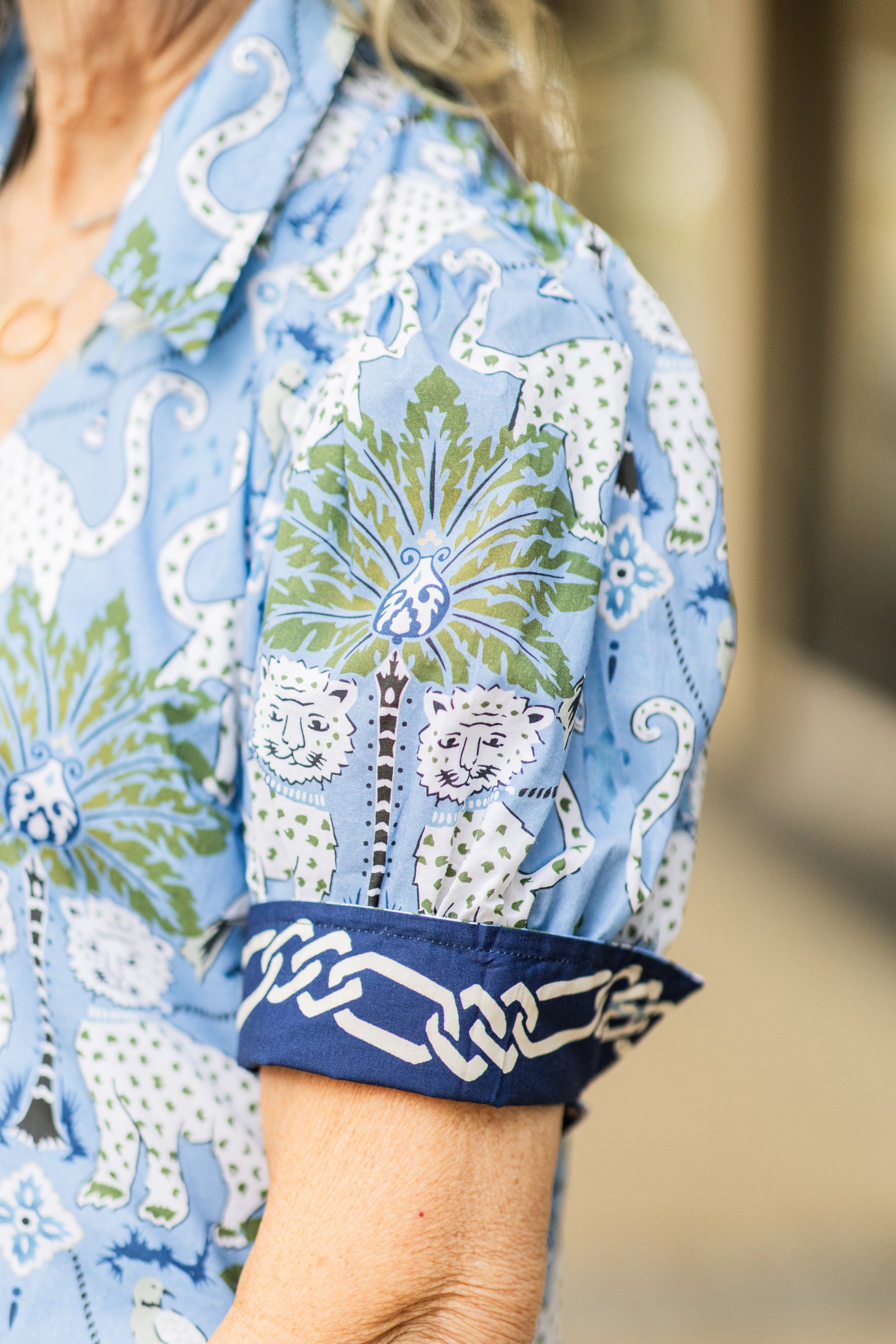 Get ready to turn heads with the Montauk Blue Cheetah dress! Featuring a vibrant blue cheetah print, this dress blends playful charm with a flattering, comfortable fit. Perfect for resort getaways or adding a splash of fun to your everyday wardrobe, it’s the ideal pick for embracing fall with bold style.