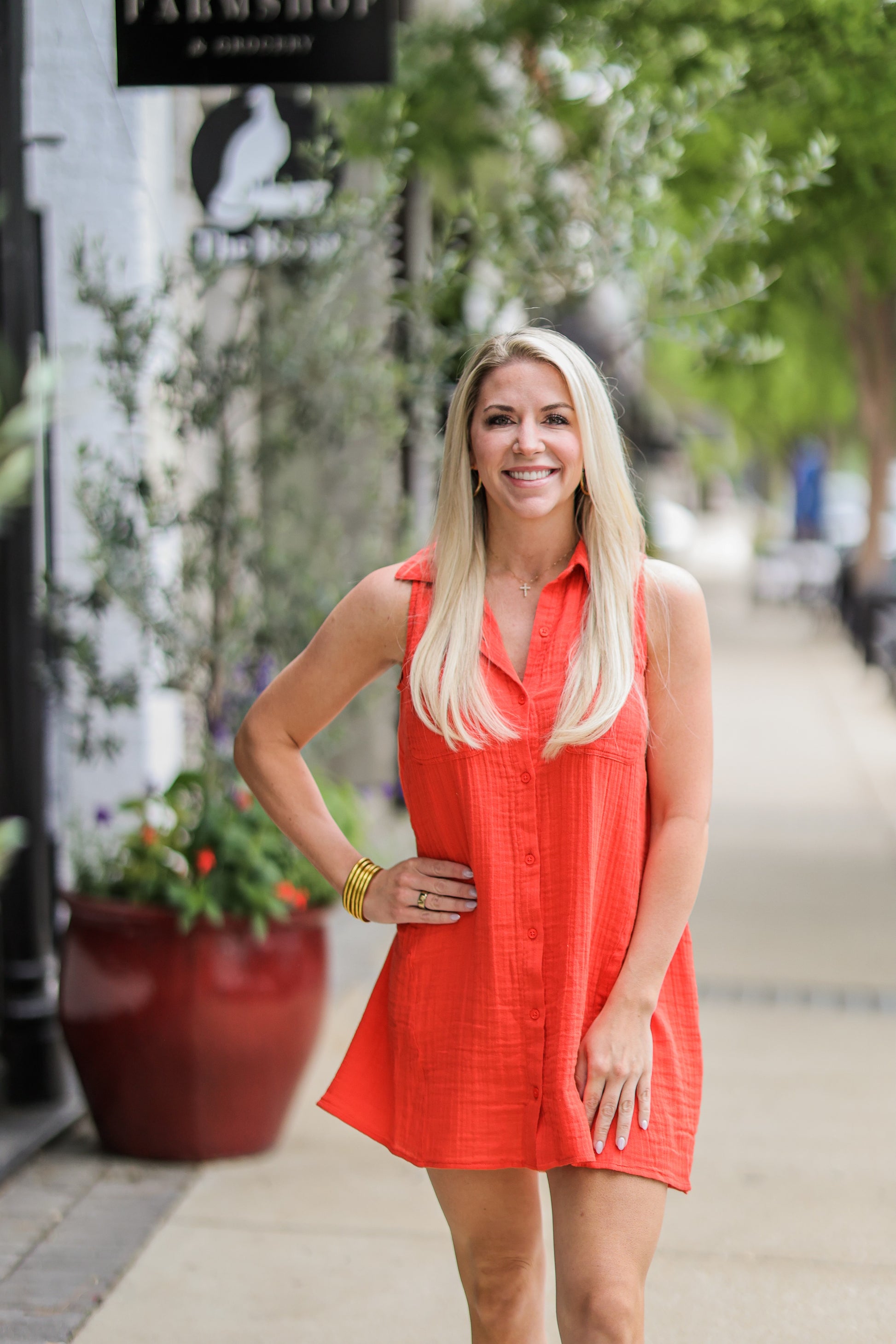 Introducing the NEW LIGHT CABANA RED MINI DRESS, the perfect addition to your warm weather wardrobe. Made from lightweight, breathable crinkle gauze, this dress offers a relaxed fit and features a button-up front, collared neckline, and convenient patch pockets. With its effortless elegance, it's the ideal combination of elevated and casual. Machine washable for easy care.