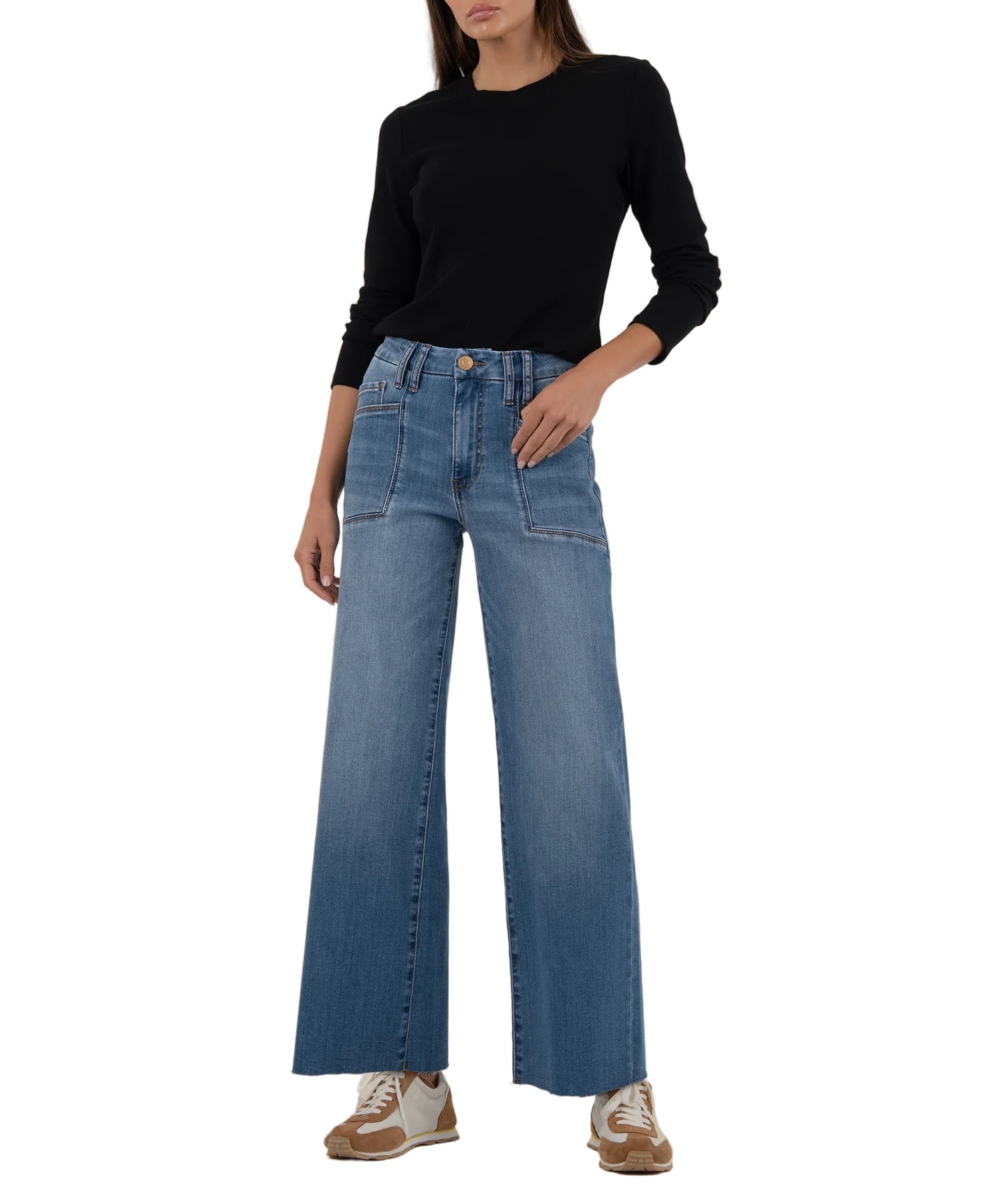 Meet your new denim obsession—the NOLLE WASHED MEG. These high-rise wide-leg jeans serve up that perfect blend of cool and cozy with a medium wash that goes with literally everything. Rock the raw hem for instant edge, slip into those front inset pockets (yes, they actually fit your phone), and thank the stretchy cotton-blend fabric for keeping you comfy all day long. Whether you're running errands or grabbing coffee with friends, these jeans are your go-to for effortless, laid-back style that actually works.