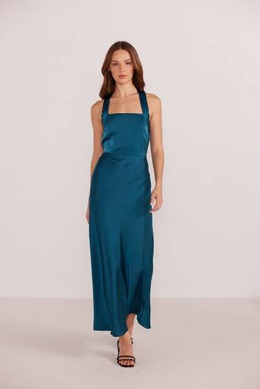 Stand out in stunning colors with the ORION HALTER MIDI DRESS. This bold and daring dress features a beautiful bottle green color with teal hues, perfect for making a statement at any formal event or as a wedding guest. Made of silky satin, this dress lays perfectly to flatter your figure and make you feel truly confident and daring. Dare to turn heads in the ORION HALTER MIDI DRESS!