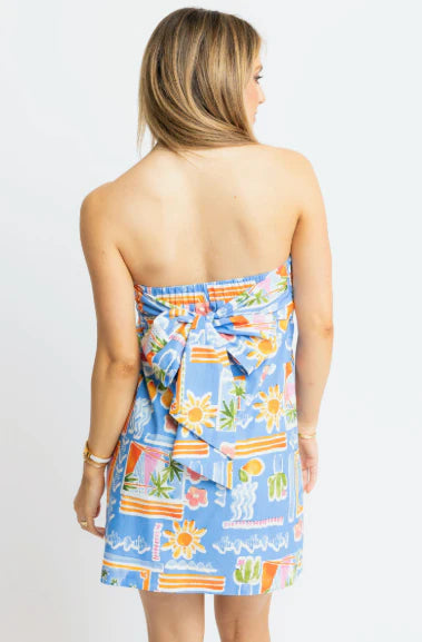 Get ready for beach days or backyard fun in the playful Santorini Bow Dress. This vibrant blue mini dress adds a splash of color and charm to any sunny adventure. Perfect for carefree moments and stylish memories.