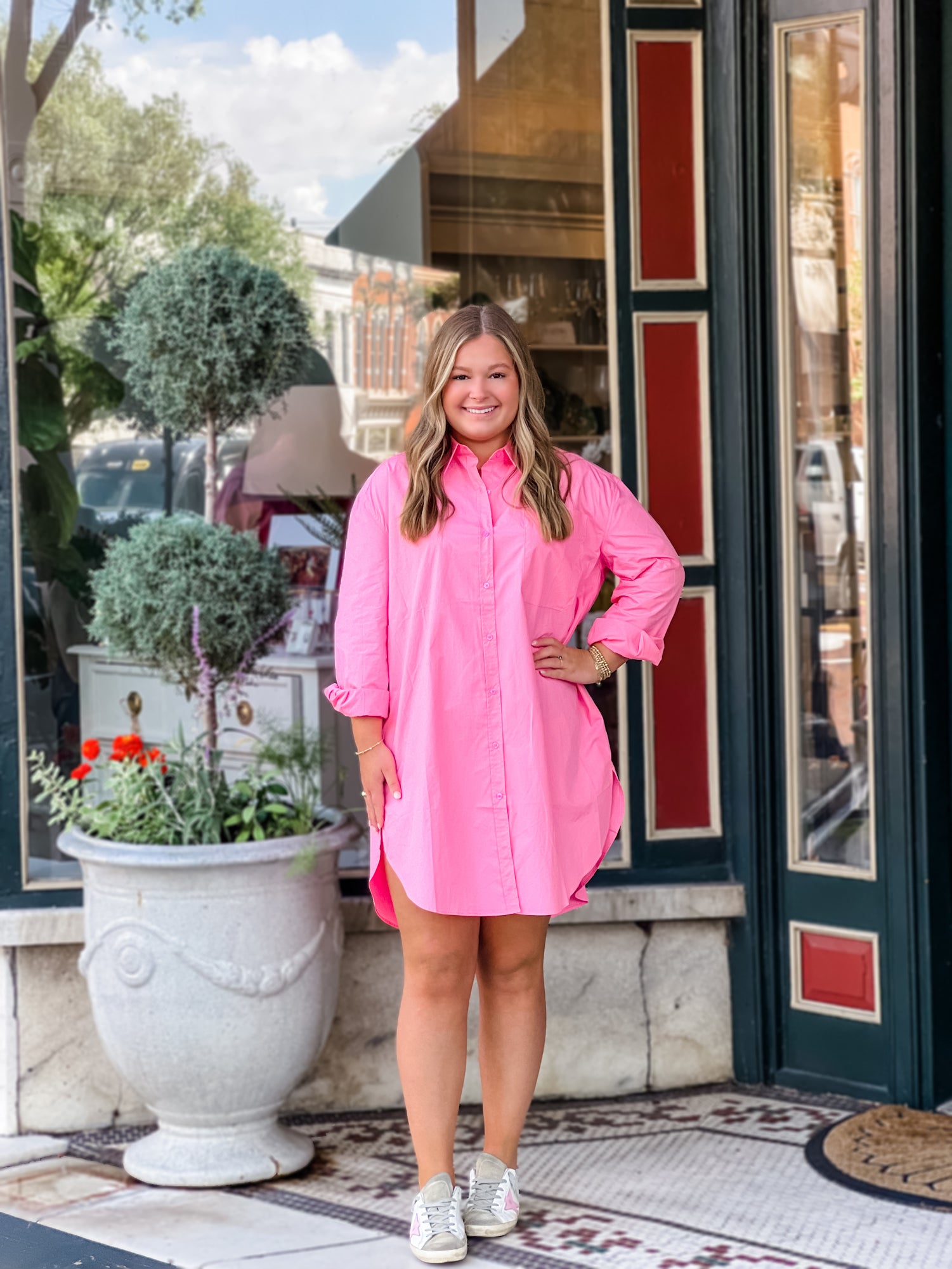 This timeless piece puts a fashionable twist on stealing your significant other's work shirt. Style this mini shirt dress with a belt and sneakers for a casual look, or pair it with heels for drinks with the girls. Made of soft cotton, this shirt dress is comfortable and breathable. It features elements that you'd find on a men's work shirt, including a point collar and chest pocket.