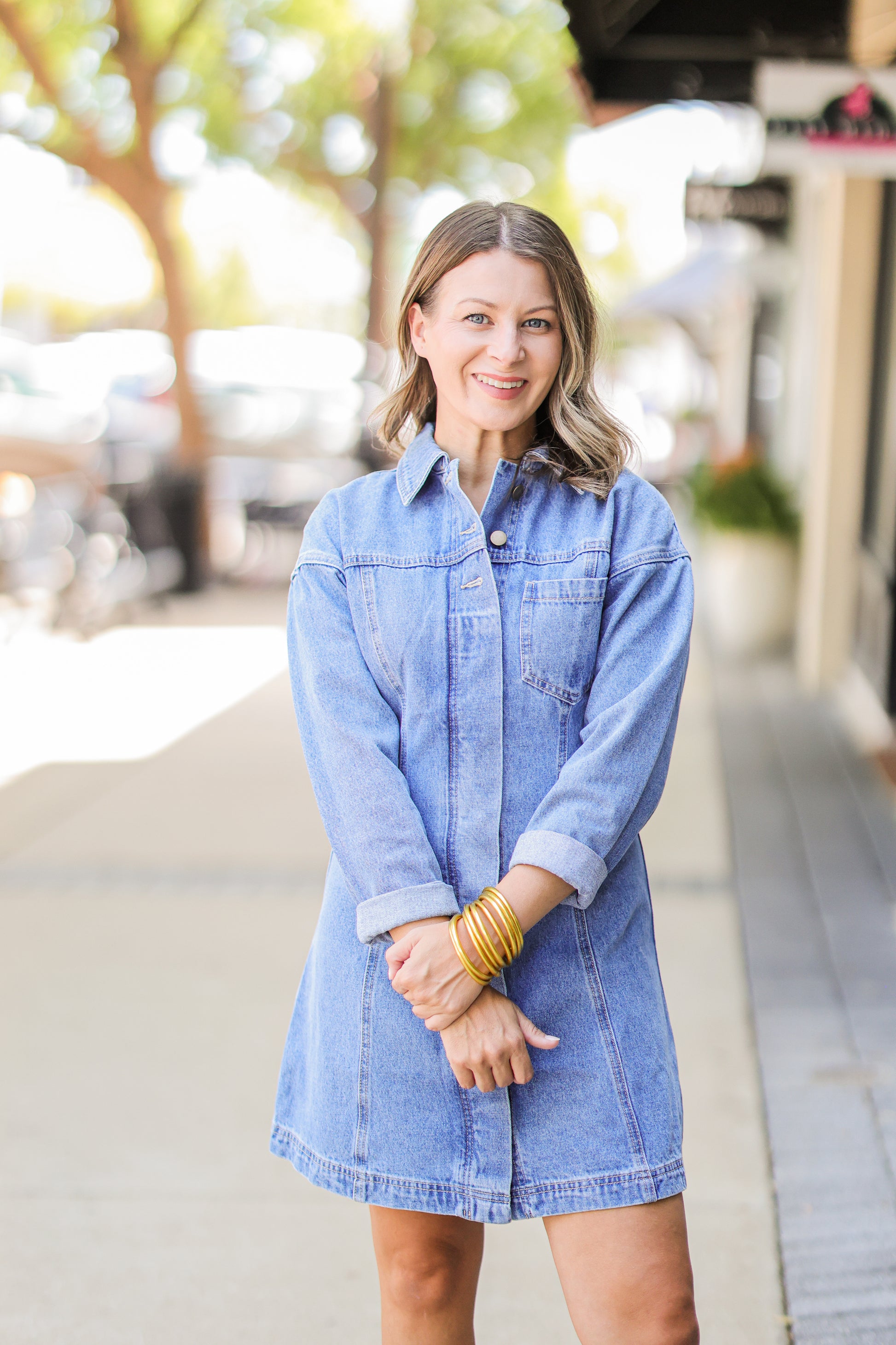 Meet your new favorite wardrobe charm: the Tully Denim Mini Dress. Styled in a playful vintage blue, it’s crafted with long sleeves and a chic collared neckline that keep things classic. The lace-up back lets you tweak the fit just right, while the snap-front closure means speedy outfit wins. With its flattering A-line cut and handy chest pocket, this dress blends effortless style with a dash of fun—ready to turn heads wherever you go. Designed in Sydney, it’s a mini dress with major personality.