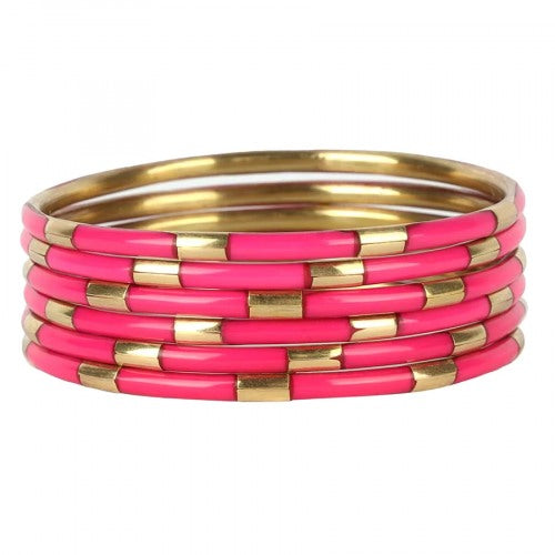 The allure of enamel is captured in our delicate set of six Veda bracelets. Available in chocolate, black, turquoise, coral, ivory, and caribe. Combined with white and gold enamel for a modern must-have bracelet set, or stack them with an AWB of your choice. Vedas are ancient Hindu texts containing wisdom delivered to priests via hymns, philosophy, and other rituals.